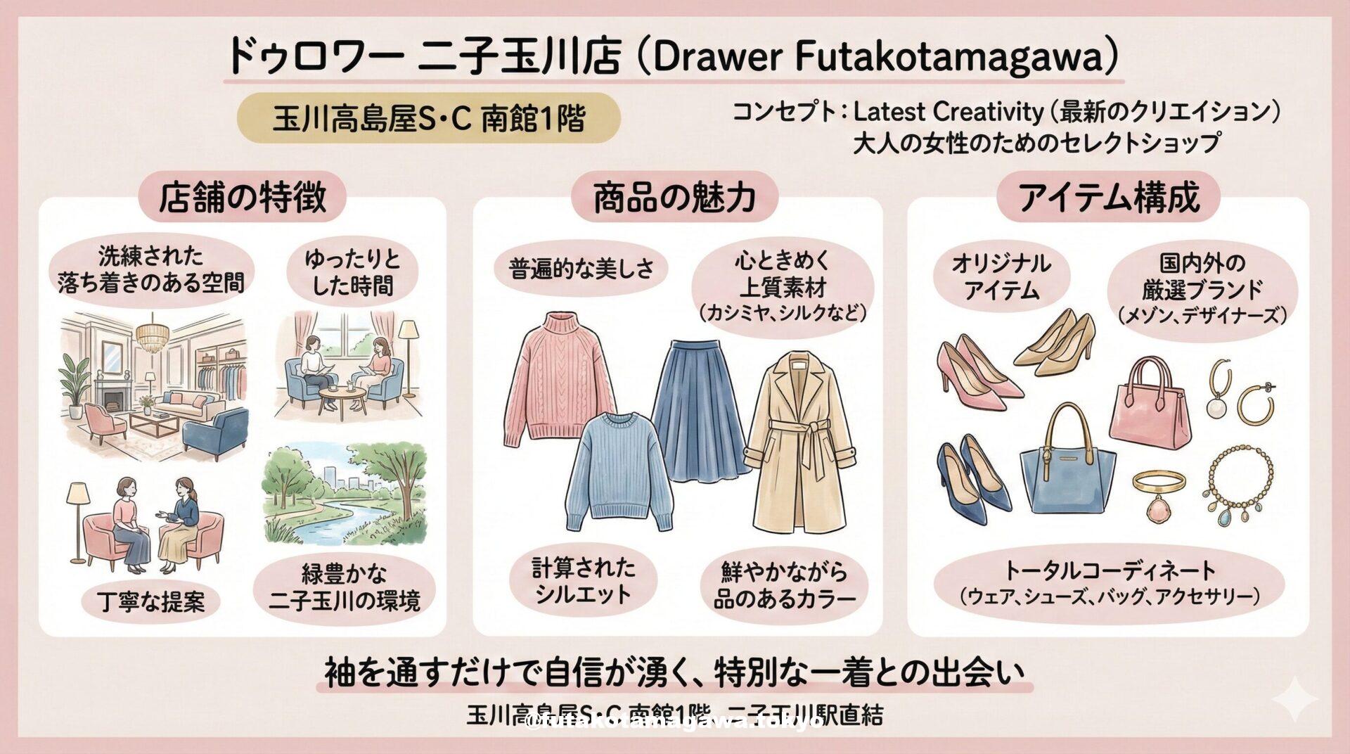 写真 ひとこと紹介文 二子玉川・玉川高島屋S・C南館3F「アニエスベー」。タイムレスな定番と今を映すコレクション。上質な日常をつくる一枚に出会えます。 takashimaya.co.jp 地図 AI紹介文(ChatGPT5編) フレンチカジュアルの原点を、日常に。二子玉川駅からすぐの玉川高島屋S・C南館3F「アニエスベー」は、世代と性別を超えて愛されるベーシックを軸に、季節のムードを軽やかに乗せたコレクションを展開しています。営業時間は10:00〜20:00、直通03-3708-1701。まずは店頭で“今 ...
