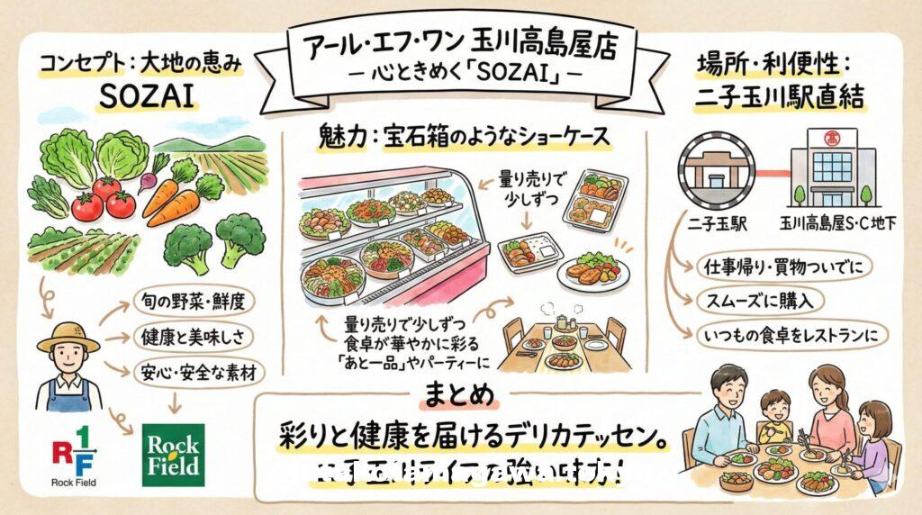フリーキーワード二子玉川高島屋のデパ地下で、ひときわ洗練された存在感を放つ「アール・エフ・ワン」。ショーケースに並ぶのは、旬の野菜を贅沢に使ったサラダや、プロの技が光る本格的な洋惣菜たちです。「あと一品欲しい」という日常の食卓から、特別な日のホームパーティーまで幅広く活躍します。見て楽しみ、食べて健康になる。心も体も満たされる「SOZAI」で、いつもの食事を少し贅沢な時間に変えてみませんか?