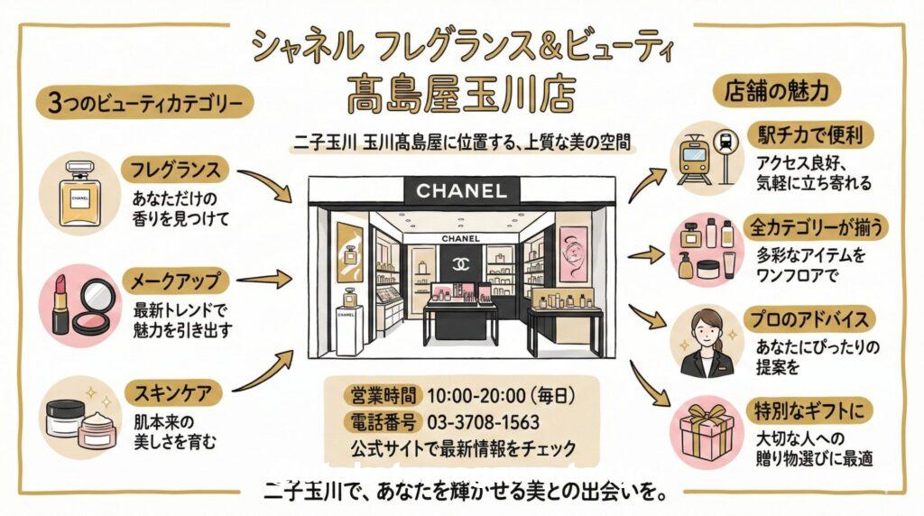 二子玉川でのショッピングの際は、ぜひこのラグジュアリーな空間へ足を運んでみてください。シャネルが提案する卓越した美の世界が、あなたの毎日をより豊かに彩ってくれることでしょう。
