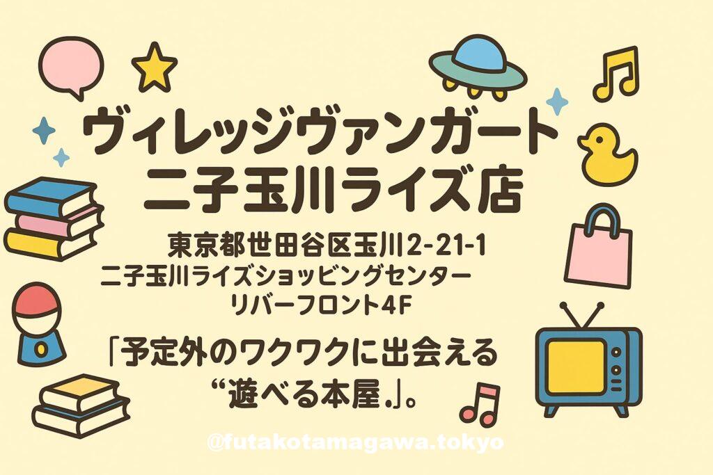フリーキーワード | 二子玉川ライズ・リバーフロント4Fの「ヴィレッジヴァンガード」。本・雑貨・キャラグッズ・駄菓子まで“遊べる本屋”の魅力が凝縮。店内は発見の連続で、ギフトや推し活小物の調達にも最適。営業時間は10:00〜20:00、駅直結で雨でも行きやすい。最新の入荷&企画は店舗X/Instagramでチェックして、今日の“予定外のワクワク”を手に入れよう。 |