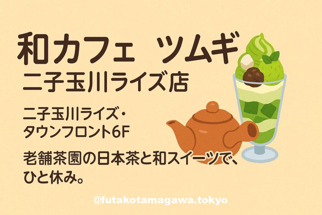 二子玉川ライズ・タウンフロント6Fにある「和カフェTsumugi 二子玉川ライズ店」は、和のやさしさを現代のカフェスタイルで楽しめる一軒。