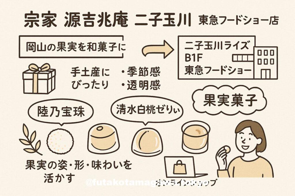 二子玉川ライズB1・東急フードショーに店を構える「宗家 源吉兆庵」は、果実の姿・形・味わいをいかした“果実菓子”で知られる和菓子店。