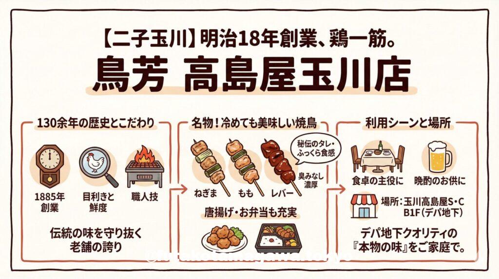 今回は、明治18年(1885年)創業という圧倒的な歴史と伝統を誇る**「鳥芳(とりよし) 高島屋玉川店」**をご紹介します。
