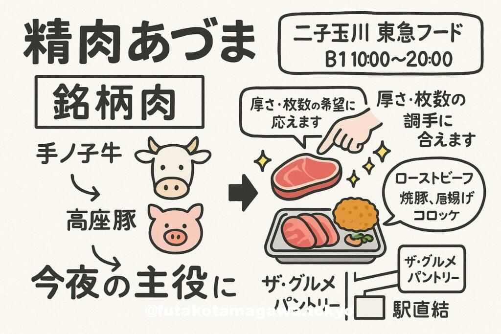 二子玉川駅直結の「二子玉川ライズ・ショッピングセンター」地下1階、ザ・グルメパントリーに構える〈精肉あづま 二子玉川 東急フードショー〉。