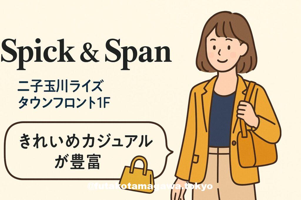 フリーキーワード | 二子玉川ライズ1F「Spick & Span」は、上質ベーシックに程よいトレンドをのせたきれいめカジュアルの名店。通勤に映えるジャケットや美脚パンツ、週末に頼れるデニムやワンピまで、着回しを軸にセレクト。バッグやシューズ、アクセまで揃うから、ここ一軒で“今日の私”が完成します。駅直結・10:00〜20:00の利便性も魅力。大人の日常を、気負わず上品にアップデート。 |