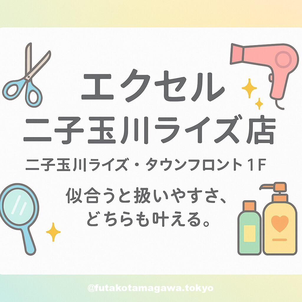 二子玉川ライズS.C.タウンフロント1Fの「エクセル 二子玉川ライズ店」は、世界の舞台で感性を磨いたトップデザイナーが在籍し、カット・カラー・ヘアエステをそれぞれの専門家が担当する“総合美容室”。