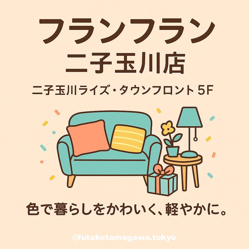 写真 ひとこと紹介文 二子玉川ライズ5F「Francfranc」は、家具・雑貨・ギフトが“カラーと遊び心”でそろうライフスタイルショップ。毎日を可愛く、軽やかに整えたい人の強い味方。 地図 AI紹介文(ChatGPT5編) 二子玉川ライズ・タウンフロント5Fにある「Francfranc(二子玉川店)」は、家具からテーブルウェア、アロマ、ギフトまで“色とデザイン”で暮らしを楽しくするライフスタイルブランドの直営ショップです。店内は季節のカラーが効いたコーディネートで、ソファやラグ、クッション、照明、小物まで ...