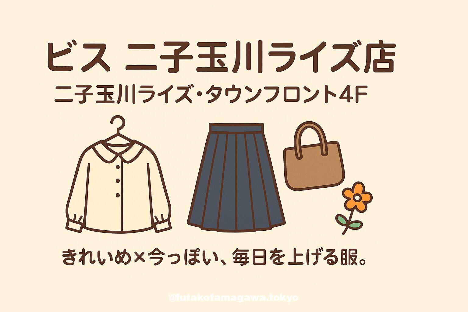 写真 ひとこと紹介文 タウンフロント4Fの「VIS(ビス)二子玉川ライズ」。通勤も週末も“cheer up LADY”な装いに。10:00–20:00、駅直結で寄り道買いがしやすい一軒。 地図 AI紹介文(ChatGPT5編) 二子玉川ライズ・タウンフロント4Fにある「VIS(ビス) 二子玉川ライズ」は、二子玉川らしい上品さと軽やかさを備えた“きれいめカジュアル”が見つかるレディスファッションの専門店です。営業時間は10:00〜20:00、電話は03-5716-1535。駅直結の利便性も相まって、仕事帰り ...