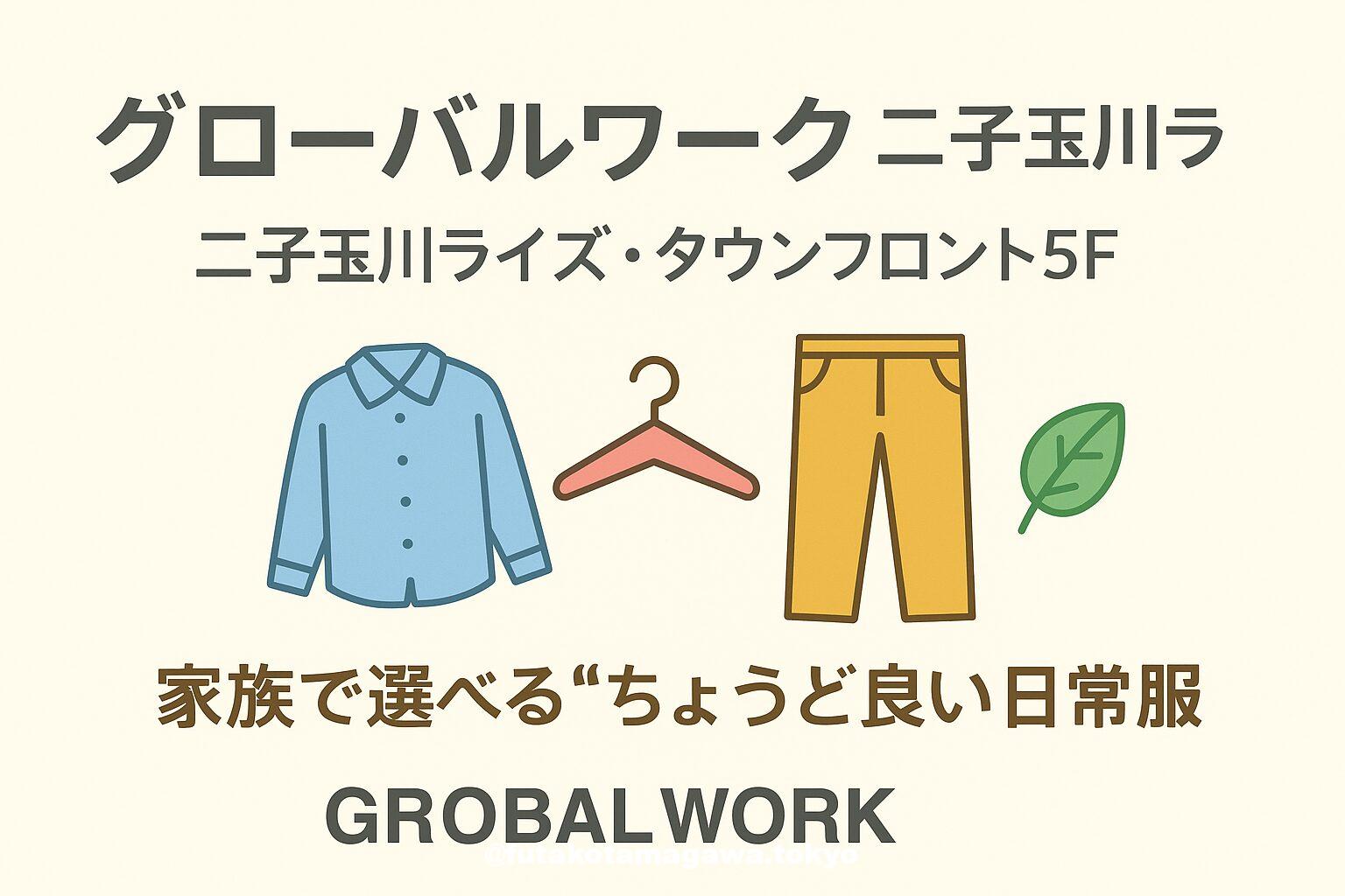写真 ひとこと紹介文 「GLOBAL WORK 二子玉川ライズ」は、家族みんなで使える“ちょうど良い”日常服が揃うショップ。タウンフロント5F・10:00–20:00。好感度と着心地を両立した定番から旬のトレンドまで。 ドットエスティ+1 地図 AI紹介文(ChatGPT5編) 二子玉川ライズ・タウンフロント5FにあるGLOBAL WORK(グローバルワーク)は、メンズ・ウィメンズ・キッズが一緒に選べるファミリー対応の人気ブランド。営業時間は10:00〜20:00。週末のまとめ買いにも、平日の仕事帰りにも ...