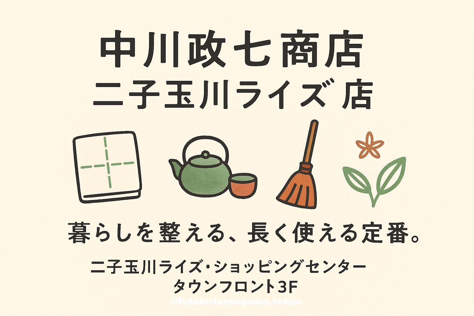 写真 ひとこと紹介文 タウンフロント3F「中川政七商店」。1716年奈良創業の知恵を今の暮らしへ。毎日使いの道具から贈り物まで、美しく長く使える定番が揃います。二子玉川ライズ中川政七商店 地図 AI紹介文(ChatGPT5編) 二子玉川ライズ・タウンフロント3階にある「中川政七商店」は、300年の歴史をもつ工芸の知恵を現代の暮らしに編み直すライフスタイルショップです。店内には、麻のかや織ふきんやキッチン道具、季節のしつらえ、身に着ける布もの、丁寧に作られた食品まで、使うほどに良さが増す“日々の道具”が整然 ...