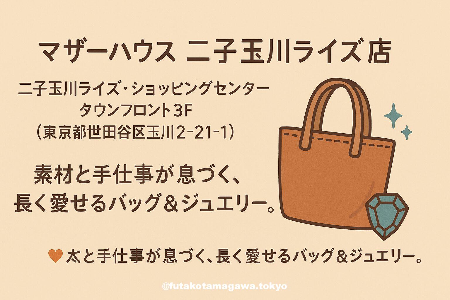 写真 ひとこと紹介文 「途上国から世界に通用するブランド」を掲げるマザーハウス。二子玉川ライズ3Fで、手仕事が息づくバッグ&ジュエリーに出会えます。二子玉川ライズ 地図 AI紹介文(ChatGPT5編) 二子玉川で“いいものを長く”選びたいなら、まず訪ねたいのが〈マザーハウス 二子玉川ライズ店〉。ブランドが掲げる理念は「途上国から世界に通用するブランドをつくる」。素材の力と職人の技を尊重し、使い心地と美しさを両立させたバッグや革小物、ジュエリーが並びます。華美な装飾ではなく、日々の相棒として頼れる道具とし ...