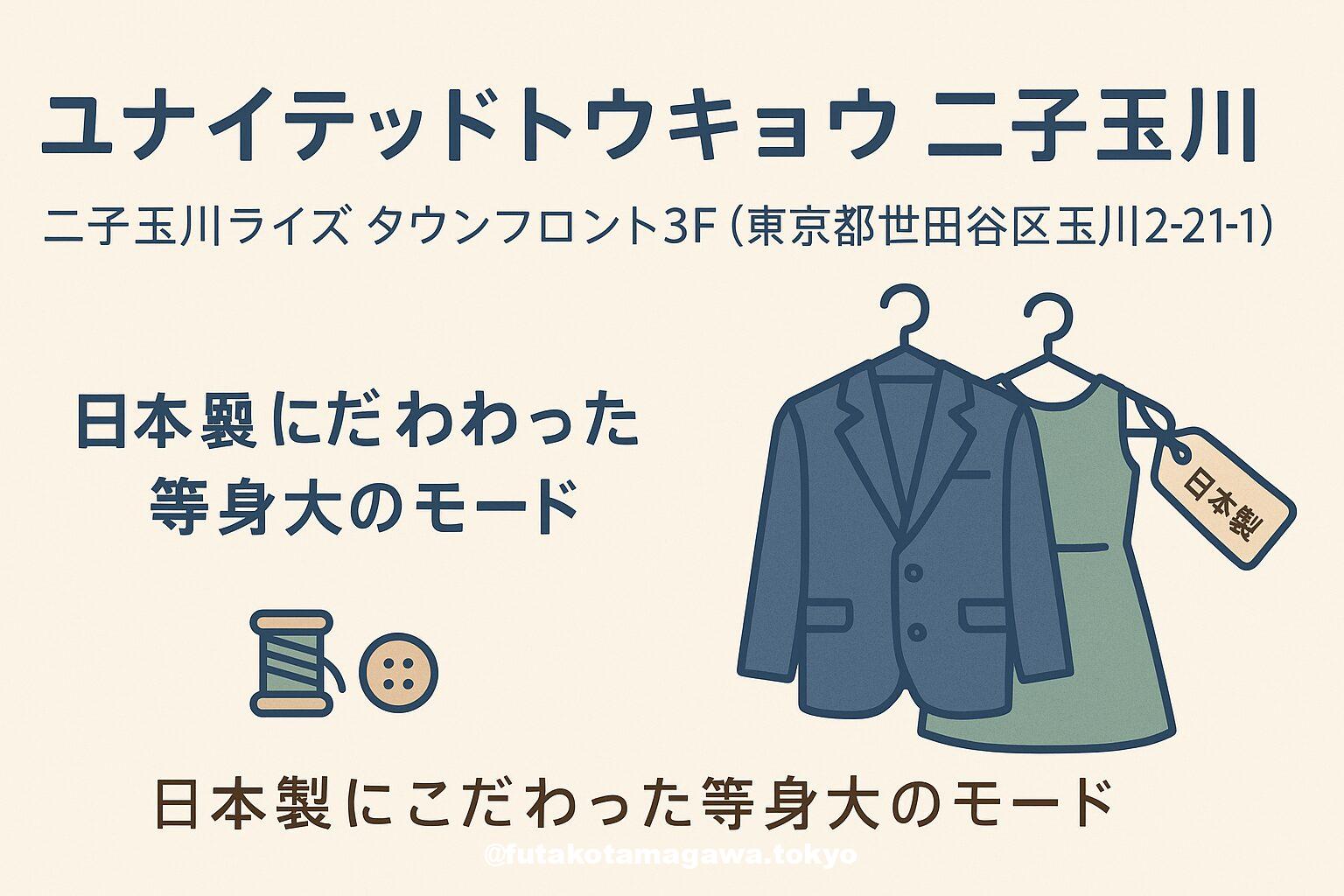 写真 ひとこと紹介文 ALL MADE IN JAPANの洗練を日常に。〈UNITED TOKYO 二子玉川〉は、タウンフロント3Fでメンズ&レディスの“長く愛せる一着”に出会える場所です。 二子玉川ライズ 地図 AI紹介文(ChatGPT5編) 二子玉川で“等身大のモード”を探すなら、〈UNITED TOKYO 二子玉川〉は外せません。ブランドの根幹は、縫製から素材調達まで徹底して日本で作る「ALL MADE IN JAPAN」。流行の輪郭を捉えつつも、日常で確かに使える設計に落とし込む——そのバランス ...