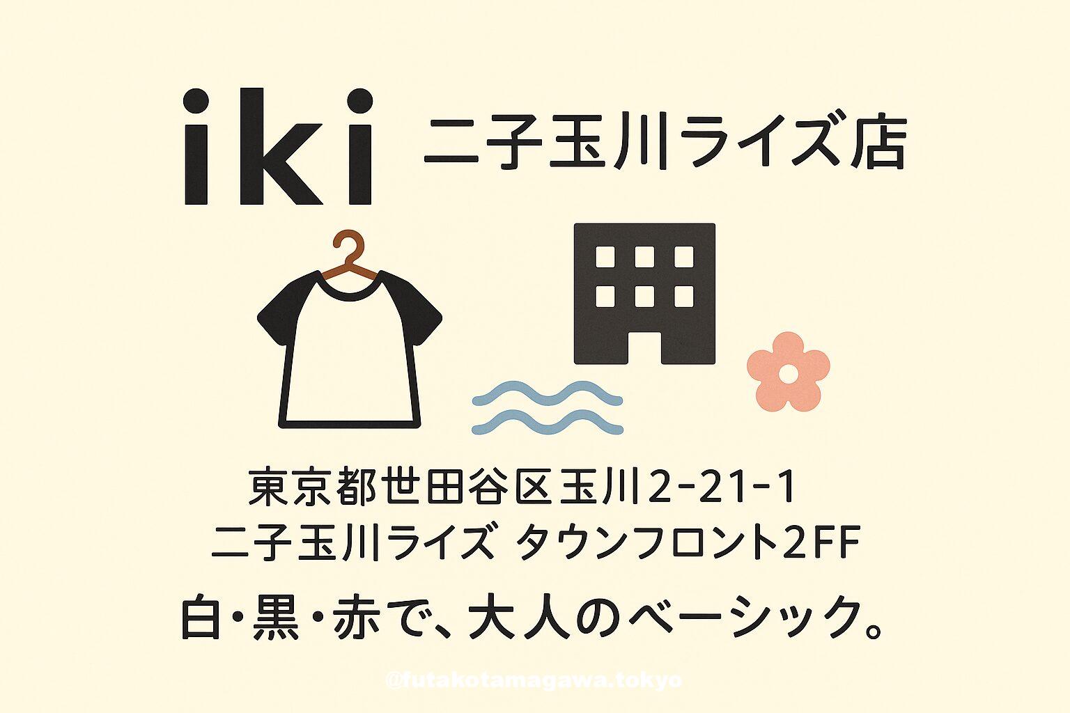 写真 ひとこと紹介文 二子玉川ライズ・タウンフロント2Fの「iki」。白・黒・赤を軸に、素材と縫製で奥行きを生む“大人のベーシック”を提案。駅近で日常を品よく更新できます。 二子玉川ライズ 地図 AI紹介文(ChatGPT5編) 二子玉川駅直結の商業施設「二子玉川ライズ」タウンフロント2Fに店を構える iki(イキ)。ブランドの軸は“白・黒・赤”という潔い3色。彩度に頼らず、素材の表情と縫製の確かさで佇まいに奥行きを与える——そんな“大人のベーシック”がここにはあります。営業時間は10:00〜20:00、 ...