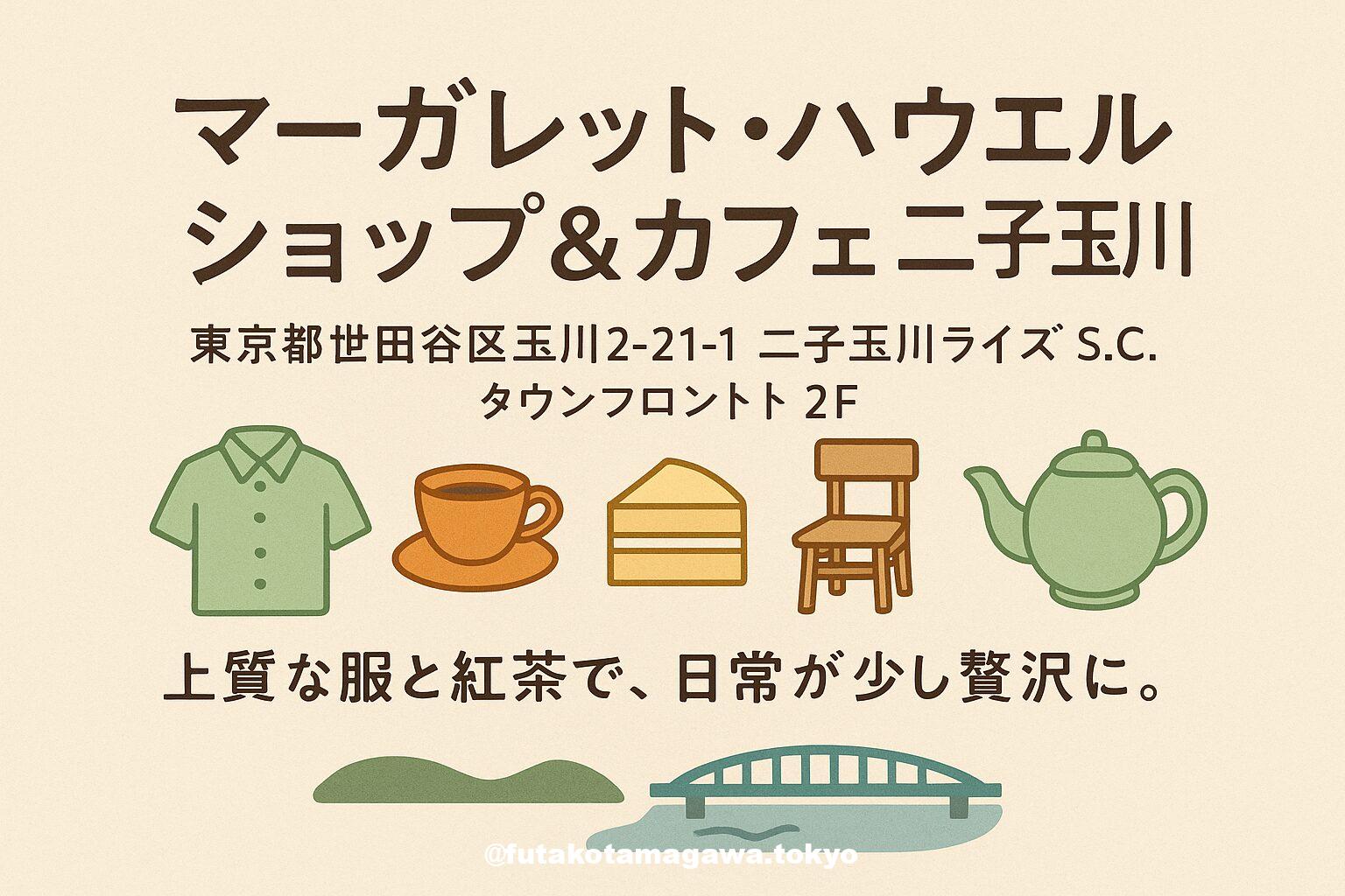写真 ひとこと紹介文 二子玉川ライズ・タウンフロント2Fの「MARGARET HOWELL SHOP&CAFÉ」。上質な日常着と“モダンブリティッシュ”の食を一度に楽しめる、街の憩いの拠点。 地図 AI紹介文(ChatGPT5編) 二子玉川駅直結、ライズ S.C. タウンフロント2Fにある「MARGARET HOWELL SHOP&CAFÉ 二子玉川」は、衣と食を同じ世界観で体験できる特別な一軒です。ショップではウィメンズ・メンズのウェアから生活雑貨までを横断的に展開。併設カフェでは、ブランドらしい落ち着 ...