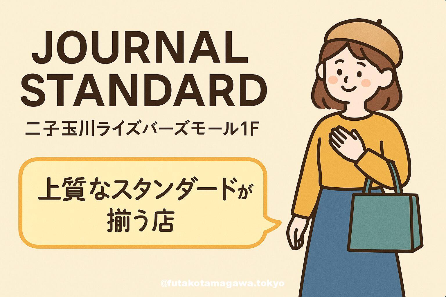 写真 ひとこと紹介文 二子玉川ライズ1FのJOURNAL STANDARDは、唯一「THE STAND」を常設する旗艦的店舗。男女の垣根を越える編集と確かな日常服が、毎日を少し上向きにする。 二子玉川ライ 地図 AI紹介文(ChatGPT5編) 二子玉川駅直結、ライズ・タウンフロント1FにあるJOURNAL STANDARD 二子玉川店は、ブランドの“今”を最も立体的に体験できる一軒です。営業時間は10:00〜20:00、レディス直通03-6627-3280、メンズ直通03-6627-3283。場所と時間 ...