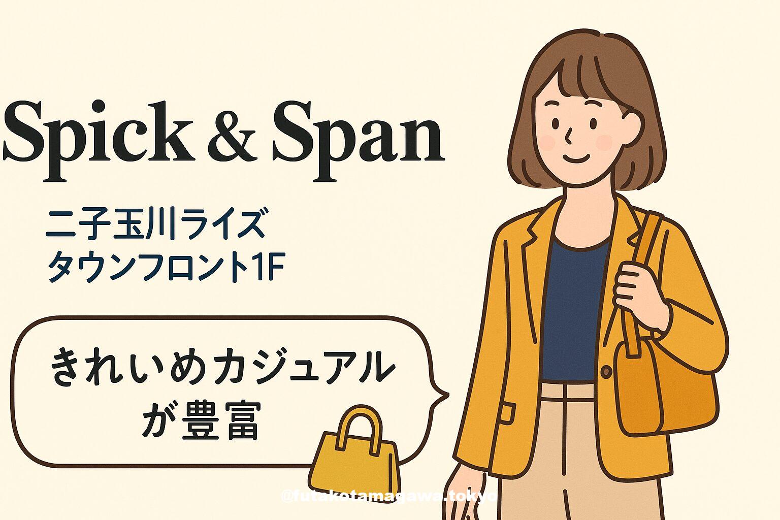 写真 ひとこと紹介文 二子玉川ライズ「Spick & Span」は、上質ベーシックに“今”のエッセンスを加えた大人のきれいめカジュアルが充実。通勤から週末まで、頼れる一枚が見つかります。 地図 AI紹介文(ChatGPT5編) 二子玉川駅直結のショッピング拠点・二子玉川ライズ。タウンフロント1Fに店を構える「Spick & Span 二子玉川ライズ店」は、ベイクルーズが展開する人気レディースブランドの旗艦的存在です。清潔感と程よいモード感を併せ持つ“きれいめカジュアル”を軸に、日常服を今の ...