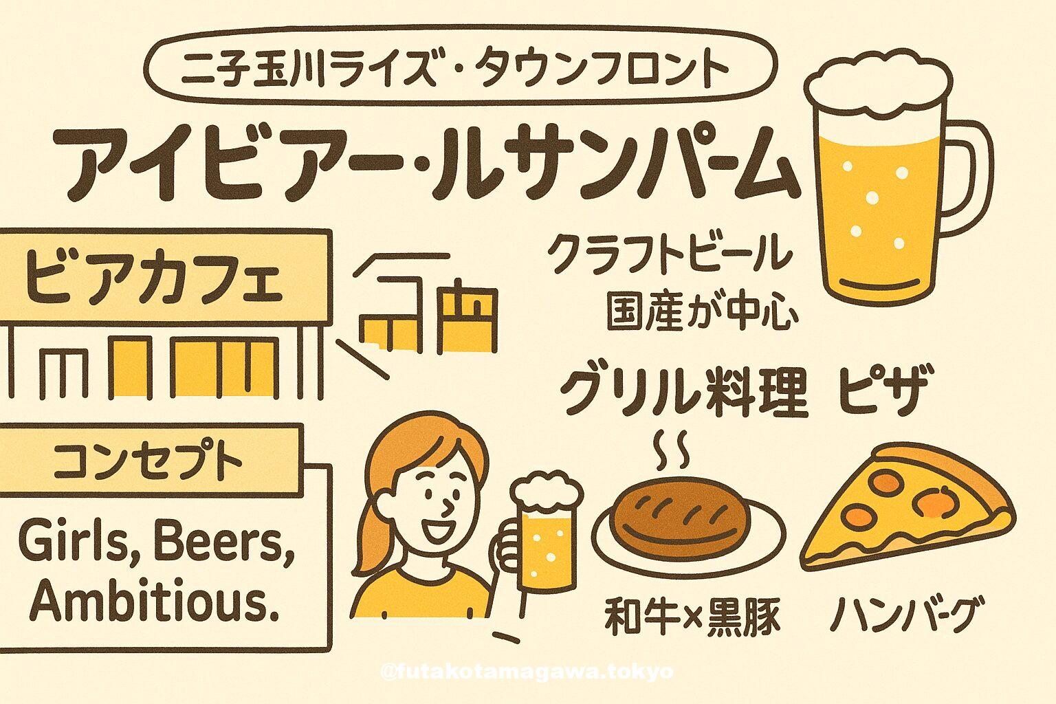 写真 ひとこと紹介文 二子玉川ライズ・タウンフロント1Fのビアカフェ「アイビアー・ルサンパーム」。国産中心のクラフトビールとグリルやピザで、昼も夜も使える78席の気軽な一軒。二子玉川ライズ食べログ 地図 AI紹介文(ChatGPT5編) 二子玉川で「昼からクラフトビール」も「買い物帰りのごはん」も任せたい——そんな時に頼れるのが、二子玉川ライズ・タウンフロント1Fの【アイビアー・ルサンパーム】。駅直結、78席の開放的なビアカフェ&レストランで、月~木・日11:00~22:00、金・土・祝前日は~23:00 ...