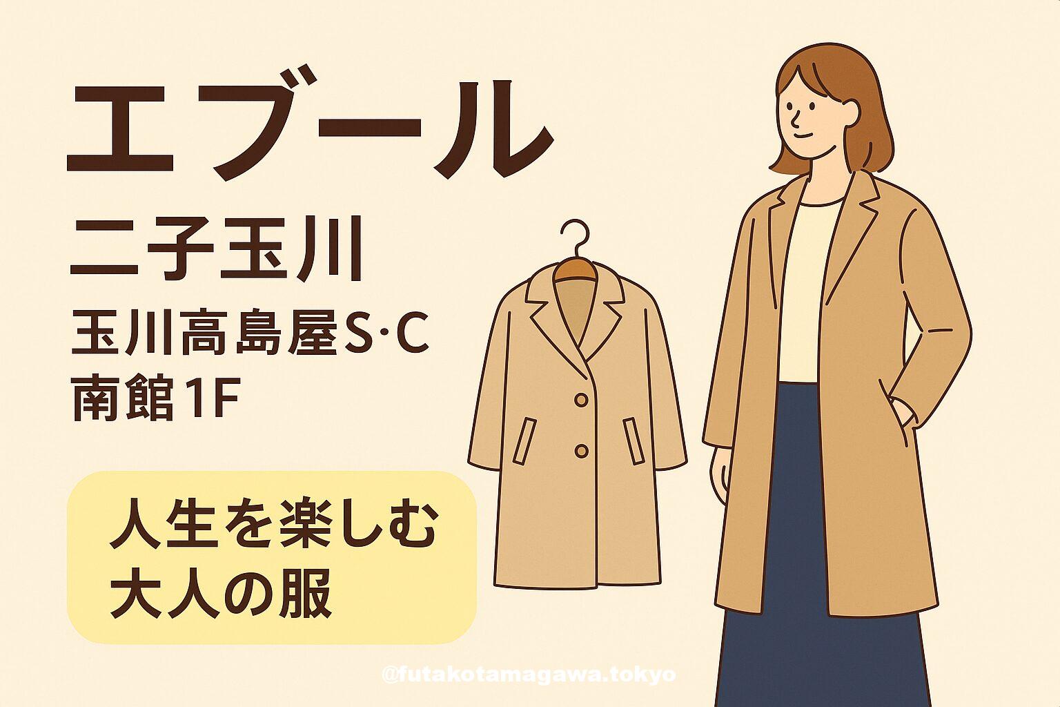 写真 ひとこと紹介文 「さらに人生を楽しむという気持ちを掻き立てる服」を提案するブランド、ebure(エブール)。玉川高島屋S・C店では、究極に美しいコートや洗練されたウェアを展開。南館1階の上質な空間で、大人の女性が心からときめく一着との出会いを提供します。 地図 AI紹介文(Gemini3編) 「好き」という感情を纏う。二子玉川で出会う、ebure(エブール)の上質 豊かな自然と都会的な感性が同居する街、二子玉川。感度の高い大人の女性が行き交うこの街のランドマーク、玉川高島屋S・C南館1階に、静かな熱 ...