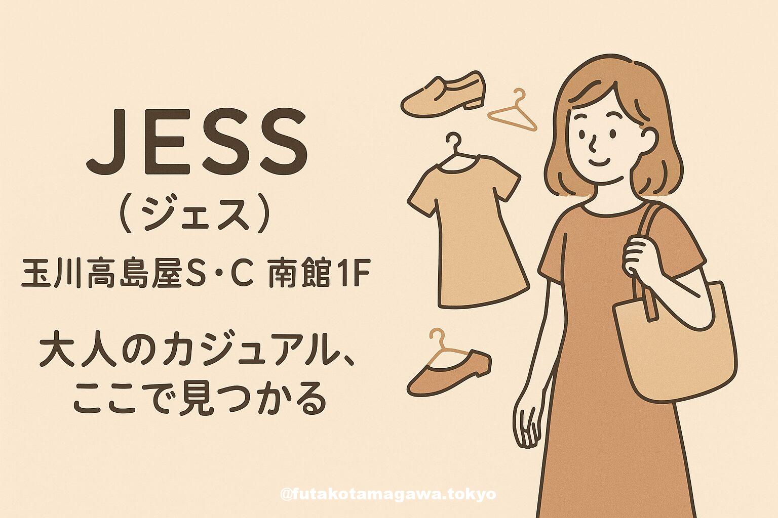 写真 ひとこと紹介文 玉川髙島屋S•C南館にある「JESS」は、大人の女性のためのインポートセレクトショップ。フランスのNO NAMEやイタリアのTRANSITなど、洗練されたデイリーカジュアルが揃います。自分らしい「本物」の一着に出会いたい方へ、上質な時間をお届けします。 地図 AI紹介文(Gemini3編) 【二子玉川】大人の日常を彩るクローゼット。インポートセレクトショップ「JESS」で出会う、私だけのスタンダード 流行を追うだけのファッションには少し疲れたけれど、毎日身につけるものは上質で心地よい ...