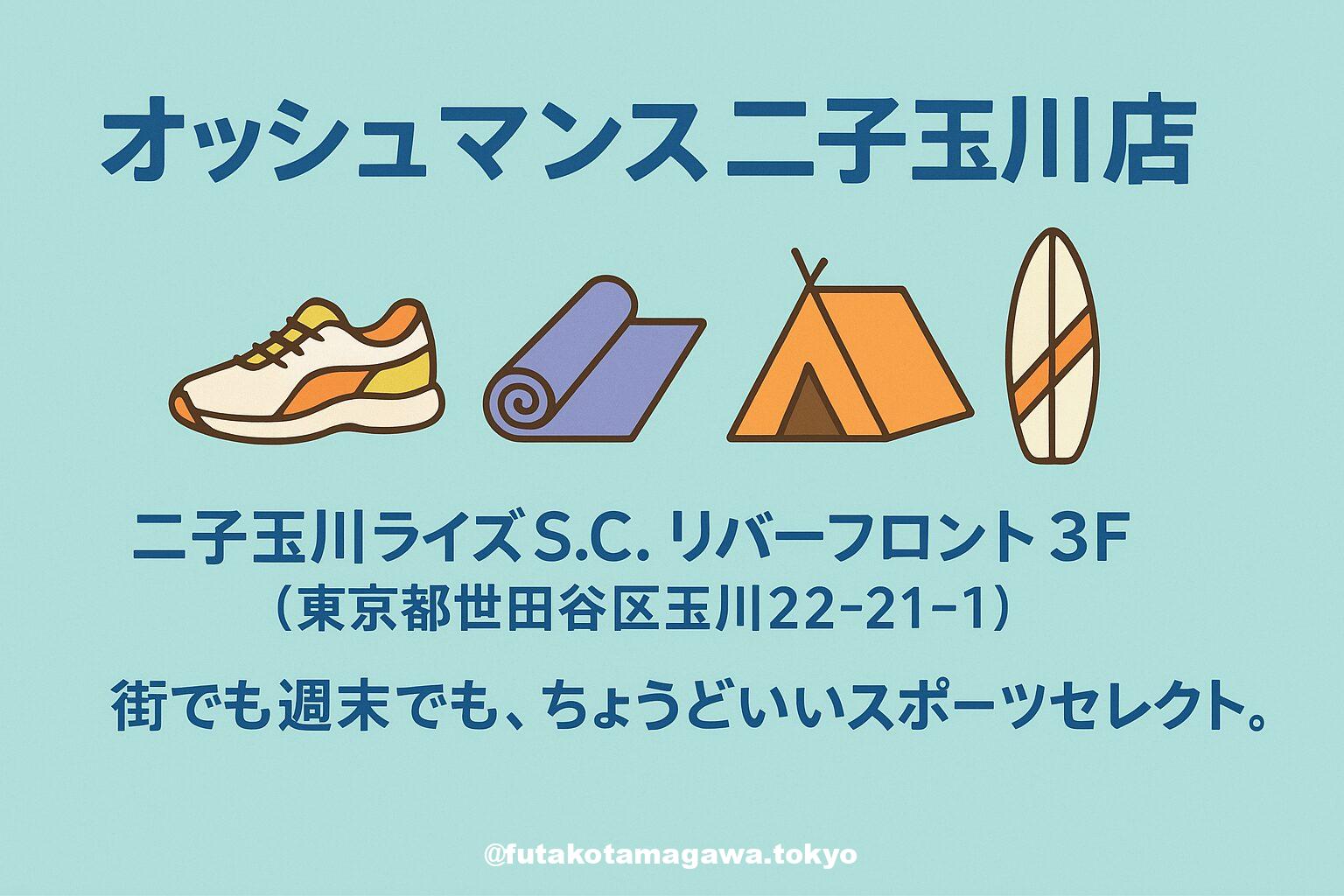 写真 ひとこと紹介文 二子玉川ライズ・リバーフロント3FのOSHMAN’S。ランニング・ヨガ・アウトドア・サーフまで“街で使える”良品が揃う、二子玉川のスポーツセレクト拠点。 地図 AI紹介文(ChatGPT5編) 二子玉川でアクティブに暮らすなら、まず覗きたいのが「OSHMAN’S 二子玉川店」。場所は〈二子玉川ライズ・リバーフロント3F〉。駅直結の動線でアクセスが良く、買い物ついでに立ち寄れるのが魅力です。スポーツ・アウトドアの人気ブランドを横断的に提案する“スポーツセレクトショップ”として、機能美と ...