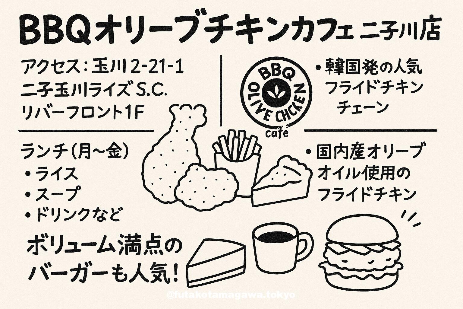 写真 ひとこと紹介文 サクッとジューシーな本格韓国チキンを二子玉川で。駅直結&テイクアウトOK、家族や友人とのカフェスタイルにもぴったり! 地図 AI紹介文(ChatGPTo3編) 二子玉川ライズ・オークモール1階にある**「bb.qオリーブチキンカフェ 二子玉川店」**は、韓国No.1チキンブランドが手掛ける日本60店舗目の旗艦店。看板メニューの〈ゴールデンオリーブチキン〉は、エキストラバージンオリーブオイルとキャノーラ油のブレンドでカラリと揚げ、冷めても衣がサクッと香ばしいのが特長だ。追加料金0円で ...