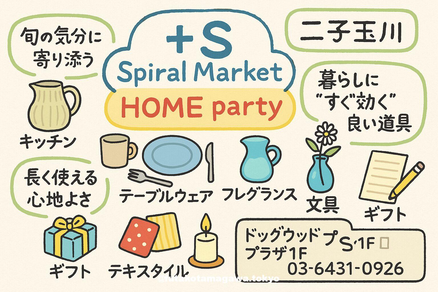 写真 ひとこと紹介文 二子玉川ライズ・ドッグウッドプラザ1Fの「+S Spiral Market」は、“Home party”をテーマに上質で日常使いできる雑貨を厳選。10:00〜20:00、TEL03-6431-0926。 二子玉川ライズ 地図 AI紹介文(ChatGPT5編) 二子玉川駅直結、ドッグウッドプラザ1階にある「+S(プラスエス)Spiral Market 二子玉川」は、暮らしに“すぐ効く”良い道具が見つかるライフスタイルショップです。ショップのキーワードは “Home party”。旬の食 ...