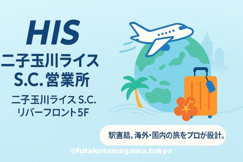 二子玉川駅からすぐ、二子玉川ライズ S.C. リバーフロント5Fにある「HIS 二子玉川ライズ S.C. 営業所」は、海外・国内問わず“自分に合った旅”を丁寧に設計してくれる相談拠点です。
