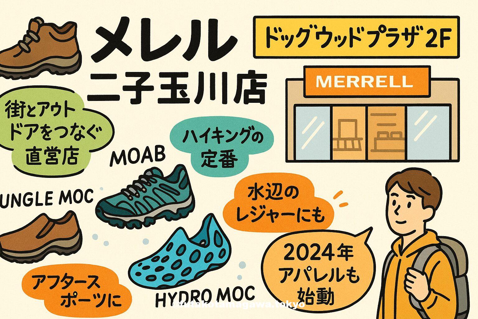 写真 ひとこと紹介文 二子玉川ライズ・ドッグウッドプラザ2Fの「メレル」は、街とアウトドアをつなぐ直営店。MOABやJUNGLE MOC、話題のHYDRO MOCまで、最新コレクションを体感できる一軒です。 MERRELL 公式オンラインストア 地図 AI紹介文(ChatGPT5編) 二子玉川で“歩く喜び”を底上げしたいなら、ドッグウッドプラザ2Fの「メレル 二子玉川ライズ店」へ。直営店ならではの豊富なサイズ・カラー展開に加え、街と自然を軽やかに行き来できるラインナップが揃います。住所は世田谷区玉川2-2 ...