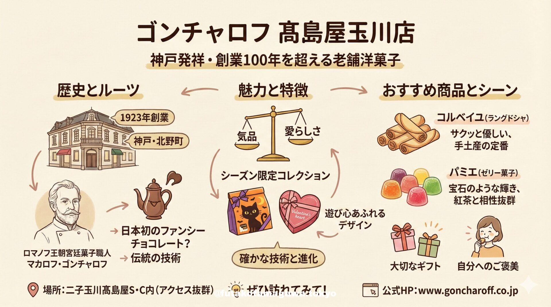 写真 ひとこと紹介文 二子玉川でパリの美食を体験。老舗ブランド「フォション」玉川髙島屋店は、香り高い紅茶や絶品パン、美しいスイーツが揃う食のセレクトショップです。日常を華やかに彩る自分へのご褒美や、センスの良い手土産をお探しの方に最適な名店をご紹介します。 地図 AI紹介文(Gemini3編) 【二子玉川】パリの風薫る美食の宝石箱。「フォション 玉川髙島屋店」で出会う至福のフレンチグルメ 二子玉川駅の喧騒を抜け、玉川髙島屋S・Cの地下へ足を踏み入れると、ひときわ洗練されたモダンな空間が目に飛び込んできます ...