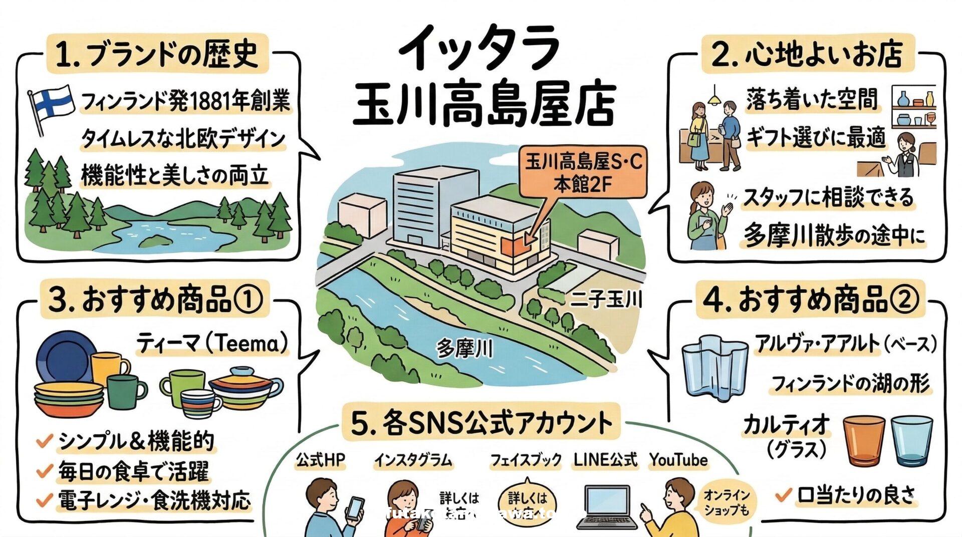 写真 ひとこと紹介文 パリ発フレグランスメゾン「ディプティック」の世界観を、玉川高島屋S・C南館1Fで体感。香水もキャンドルも、二子玉川で“香りの旅”に出かけたくなる一軒です。 地図 AI紹介文(ChatGPT5編) 二子玉川で「特別な香りをじっくり選びたい」と思ったら、玉川高島屋S・C南館1Fの「ディプティック 二子玉川店」は外せないスポットです。住所は東京都世田谷区玉川3-17-1、二子玉川駅から歩いてすぐ。南館1階のリビング・ライフスタイルフロアにあり、営業時間は10:00〜20:00と、仕事帰りや ...