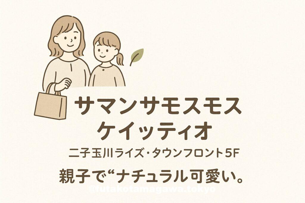 | フリーキーワード | 二子玉川, 二子玉川ライズ, タウンフロント5F, SM2 keittio, サマンサモスモス, TSUHARU, Lagom, ナチュラル, レディス, キッズ, 刺繍, レース, 綿麻, 親子リンク, 上質素材, デイリーウェア, 二子玉川ショッピング, ライズファッション, 世田谷, 服好き親子 |